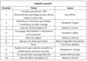 Los siguientes son los listados de los libros más vendidos en 2025 :